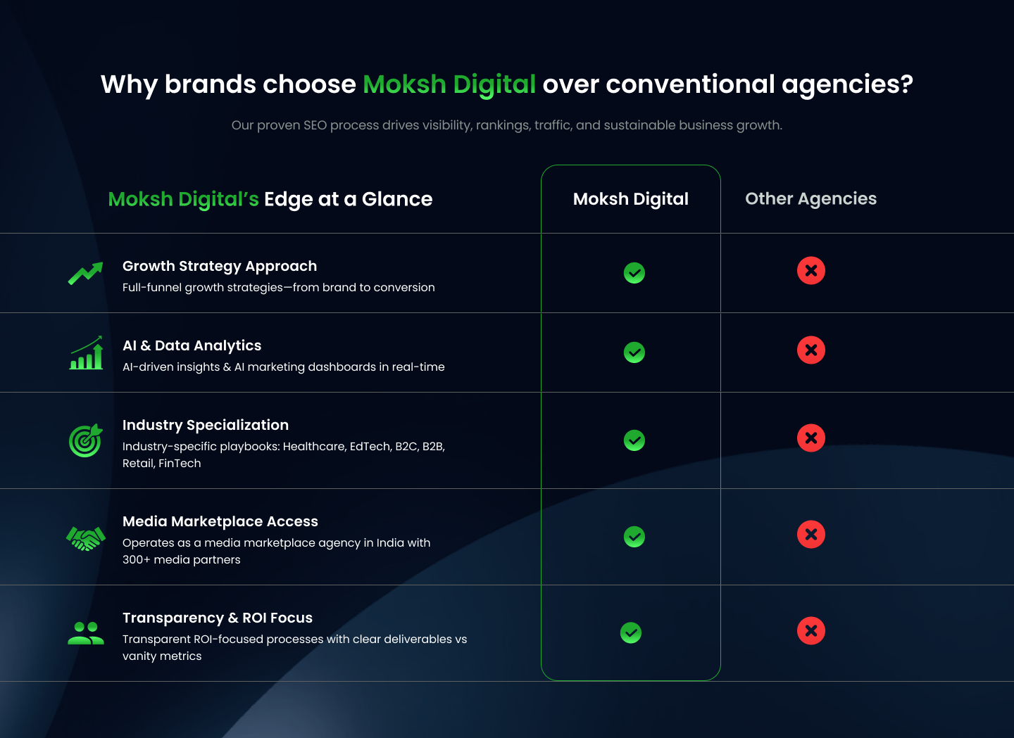 At Moksh Digital, we thrive to deliver dynamic digital marketing solutions to business of all sizes across industries. Whether you are a startup or an established brand looking to expand your digital footprint, we have got you covered.